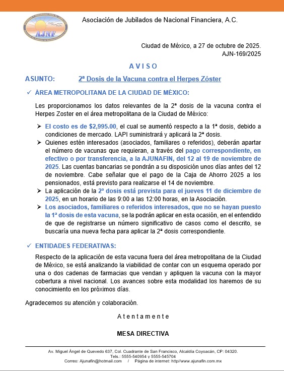 - Nafin proporcionará información de sus jubilados y pensionados a efecto de que el Instituto otorgue las prestaciones establecidas en su Ley.