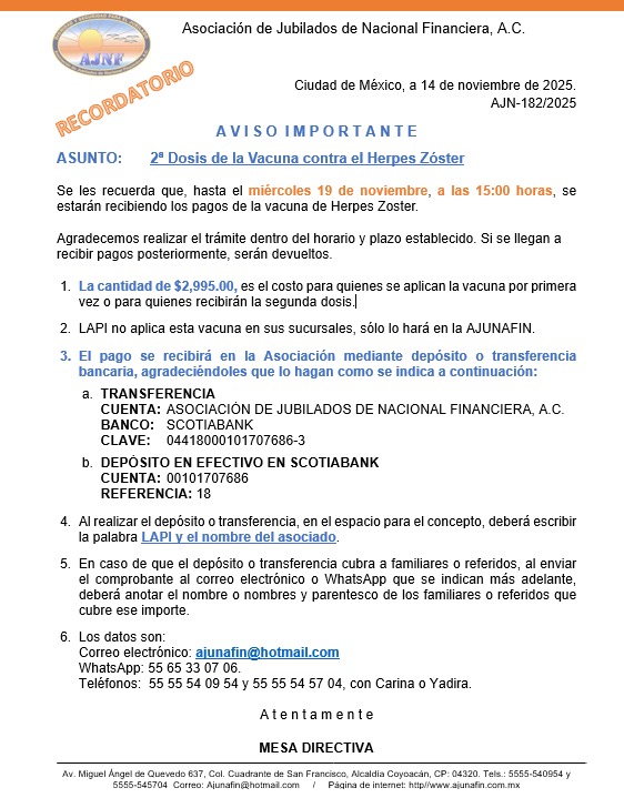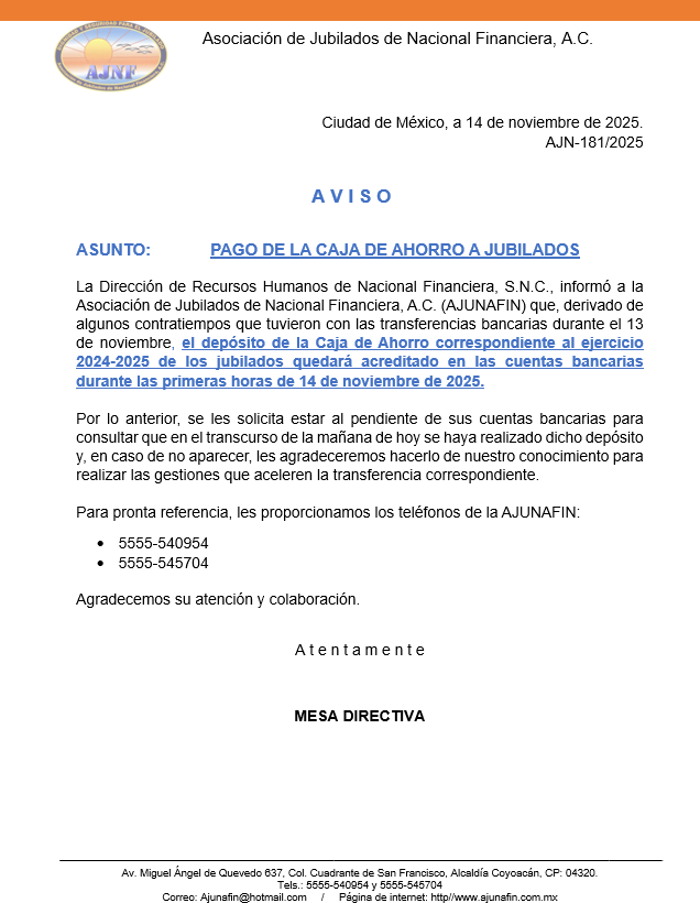 Por lo anterior, los jubilados y pensionados de Nafin que reciban pensión del IMSS ya no tendrán la obligación de presentarse ante Nafin para realizar el pase de supervivencia.